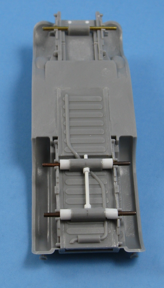 only a partial frame and molded on detail such as muffler and exhaust pipes to the bottom of the rear passenger compartment pan. The interior is quite follows the same