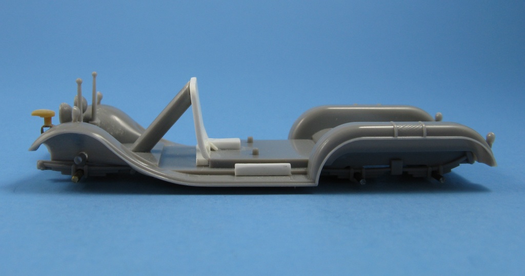 annoying ejector pin marks. Detail is a bit sparse and shows how old this mold is compared to more recent offerings. The underside/chassis is quite simplified with