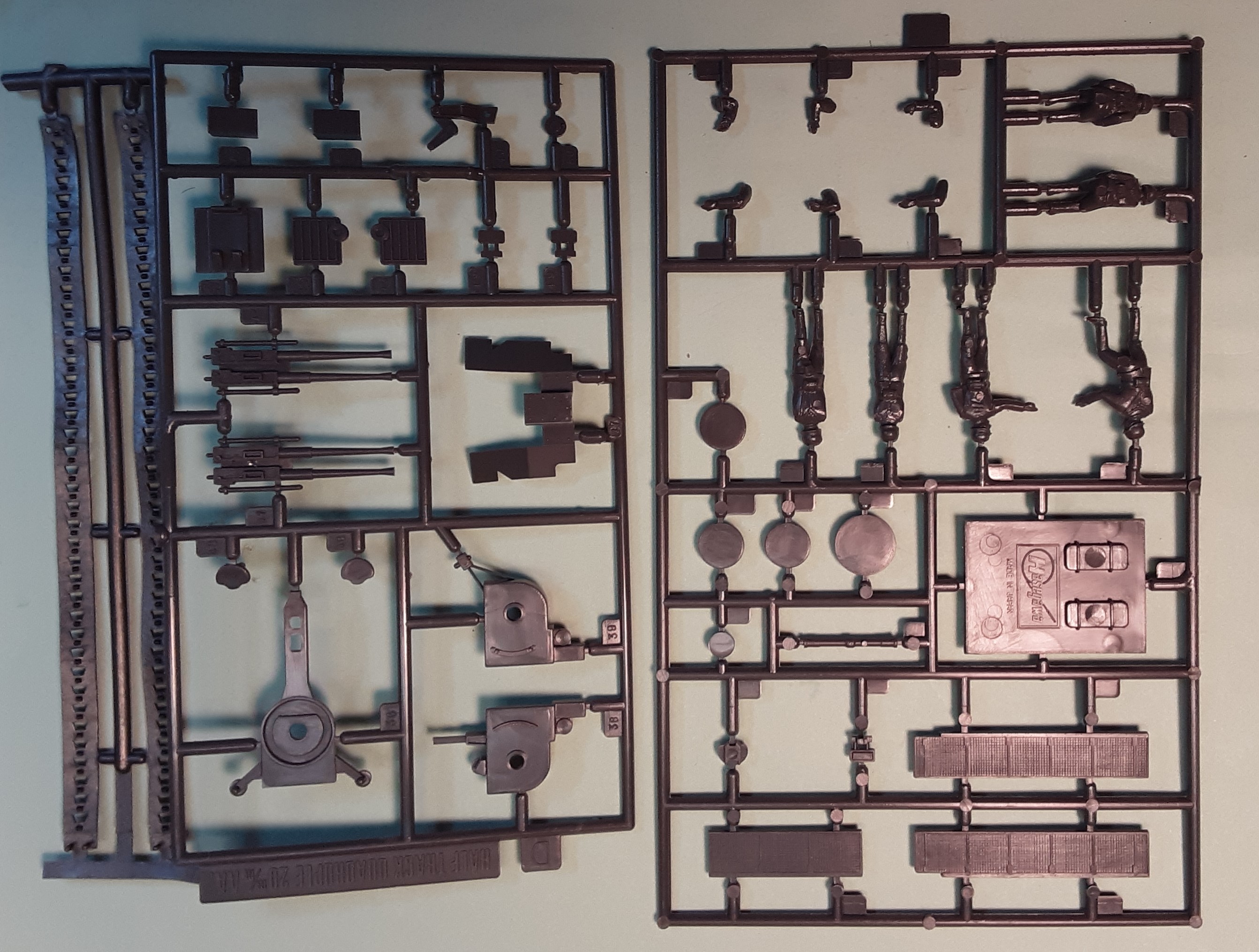 anti-aircraft gun and mount. The sprue at right is common to kits
