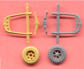 The front axles and rubber tired wheels of the Airfix and Hasegawa