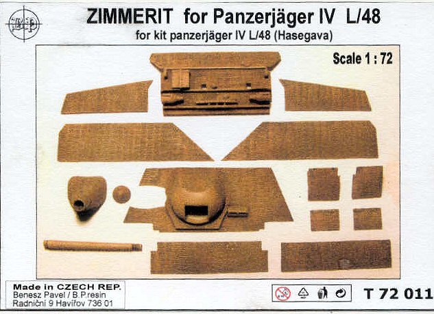 Conclusion I found the Hasegawa Jagdpanzer IV kit a solid kit of high quality 1/72-scale molding, which fit together well and with few defects. It does suffer from less detail compared to the newer Dragon JgdPzr IV kits, though is notably better than the old ESCI kit and has some superior features over the Trumpeter Jgdpz IV kit. Hasegawa’s Pz IV tracks are its weakest features. Regarding the aftermarket zimmerit, I definitely prefer the BP Resin over the etched brass since it is easier to work with; both look more convincing than most all the hand done zimmerit coating in 1/72-scale. References PANZER TRACTS No. 9-2 Jagdpanzer, by Thomas Jentz and Hillary Doyle. (2012) ( www.panzertracts.com) This is a replacement for the earlier Panzer Tracts No. 9 and covers the Pz IV based Jagdpanzer IV. PANZER TRACTS No. 9 Jagdpanzer 38 to Jagdtiger, by Thomas Jentz and Hillary Doyle. Darlington Productions (1997). This is an old, out-of-print reference publication but still quite adequate. Jagdpanzer IV, Wydawnictwo Militaria 150, 2002) ISBN 83-7219-125-5. Polish publication with English text, color profiles and historical photos. TOADMAN'S TANK PICTURES, WW II AXIS PHOTO GALLERY http://www.toadmanstankpictures.com/axis.htm Sturmgeschütze vor! website http://stugiii.com/jagdpanzer.html |