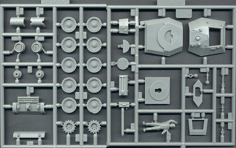 Additional comments from Jorit Wintjes: "Whereas Hasegawa's hull is indeed quite acceptable and dimensionally accurate, the turret is too low and the profile is suspect, resulting in a vehicle that doesn't look like a Crusader. Actually, the Airfix turret (while supposed to be 1/76, which it isn't) is a far better option (but then you can build the Airfix Crusader, of course, who scales out slightly smaller than 1/72 - it's however slightly too long)."