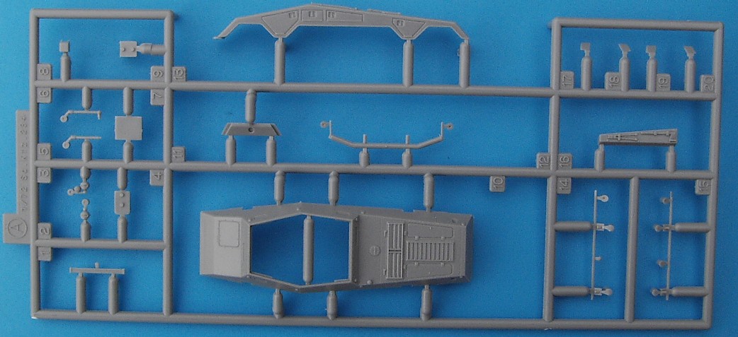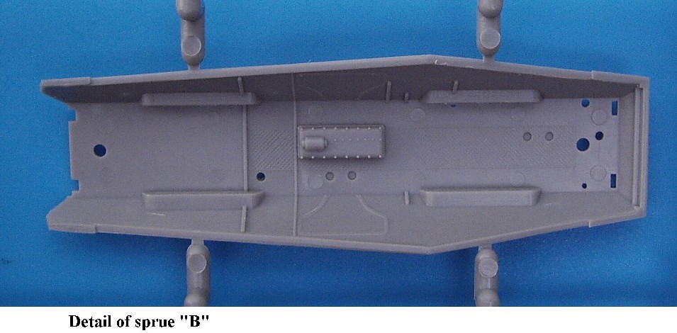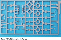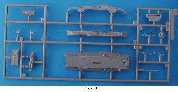 2 sprues mainly with wheels and suspension (for a total of 12 wheels/tyres with 2 different types of thread and 2 types of hubcaps) 2 sprues with upper/lower hull, sponsons, crew figure etc