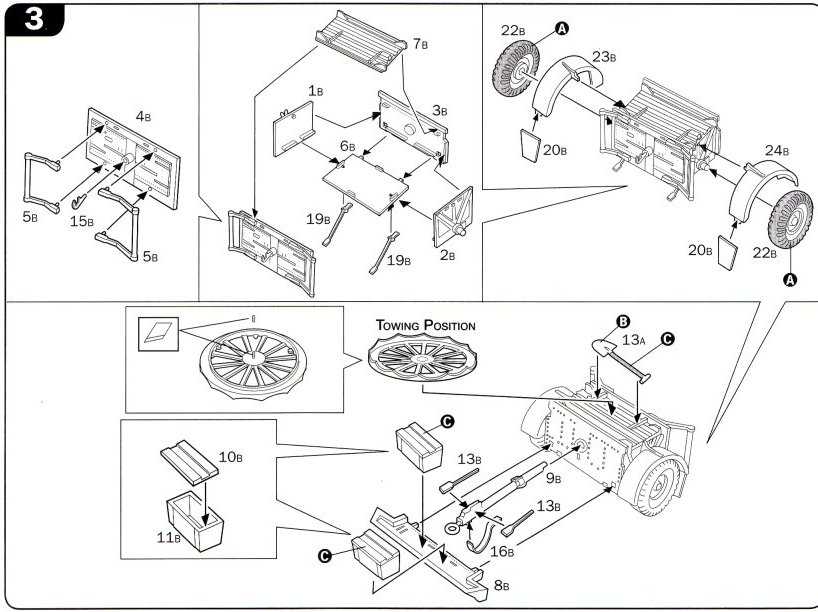 I replaced the handles located on the side of the trailer's tongue (parts 13B) as they were too chunky and used a thin plastic rod to represent them extended
