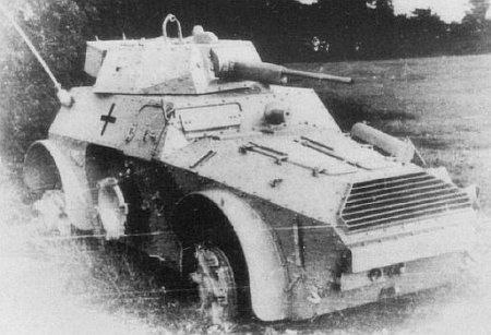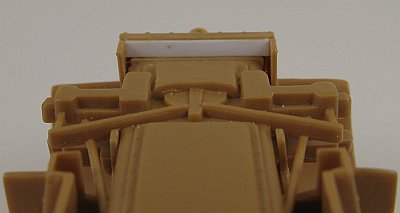 I left off part 45A because it was going to go under a set of extra jerry cans that I added to the front glacis. The jerry cans came from the spares box, and the frame was fashioned from some left over brass strip. I also replaced the rather thick fender markers on the front fenders with a new pair manufactured from some guitar wire with the balls at the top fashioned from super glue and baking soda. I didn't bother adding any markers to the rear fenders as most AB-41 pictures I found on the web didn't have them. | |||