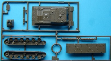 The Wargaming Model The wargaming model is avery simple affair consisting of just 10 parts, unlike the Trumpeter IS-3 easy tracks the Italeri ones are very simple with solid one piece wheels and track with little or no detail, similar to the tracks on the minitank series from Roco. Whilst this kit doesn't suffer like the IS-2 kit of being able to see through it because of not having a turret, it nether the less with the exception of the tracks, makes a fairly decent model.