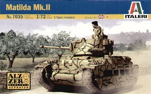 Decals are provided for 4 vehicles One Russian, two from North Africa 7th Armoured and 7 RTR and the one shown on the Box top N0.4 Independant troop Malta. All in all a nice kit that with a bit of loving care will build into a fine example, the kit measure out well to 1/72 scale according to the meager references I have for this vehicle. References Matilda Infantry Tank 1938-1945 by David fletcher Osprey new Vanguard NV008 |