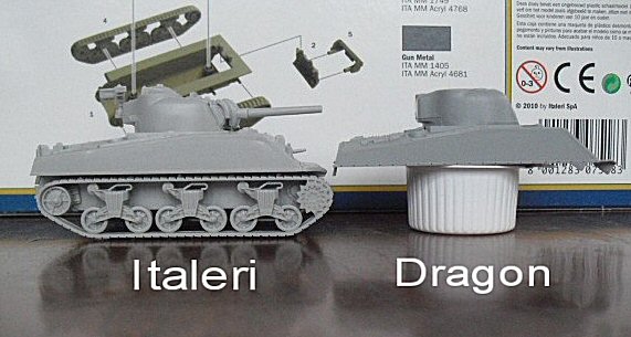I added the turrets, both kits having the small loaders hatch. Yes, I know, the hatches are closed, but some challenging "cut and paste" work and we could open this one up (us being modellers), can't we? I also do not mind the solid lifting rings and headlight protecting frames; it's a child's play to shave them off and make new ones with some wire! We even could get the modelling feel back one might lose when just assembling all those perfect Dragon kits. I apologise if you'd sense some frustration from not being able to buy them at a decent price over here in Holland, but there it is. I need some alternatives and feel Italeri can provide my one. |