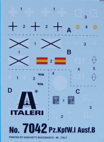 Another Italeri Preview, this time it is one of the Esci re-releases. Seeing as how Doug has already covered this vehicle in it's Esci guise so I wont add anything to it other than Italeri include the link and length tracks, which as doug points out are slightly too large, this is however more likely because these tracks were also used for the Pz II series of vehicles, although I can not confirm this as I haven't seen the Pz II in any guise yet. Italeri Have included a new set of decals covering 4 vehicles, 1 Spanish civil war, 1 Poland 1939, 1 France 1940 and one Afrika korp 1942. The Original review can be found Here |