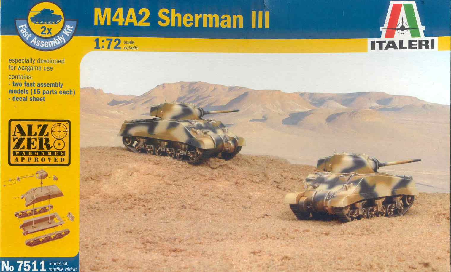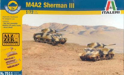 The M4A2, or Sherman III to the UK forces, was a diesel engine variant of the M4 Medium tank, and actually the first welded hull variant of the M4 to be produced. This kit is intended for the wargaming market, not for display modelers, so cannot necessarily be judged with the same criteria. Still we should expect some degree of historical accuracy despite simplification of construction and assembly. In the box are two identical sprues for two M4A2 tanks. This is a wargaming kit of 15 injection molded, styrene plastic parts per vehicle; no etched brass or resin. The tanks are finished in a three-color
