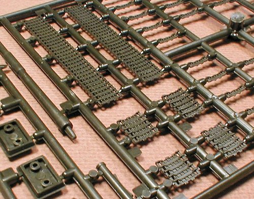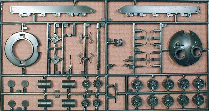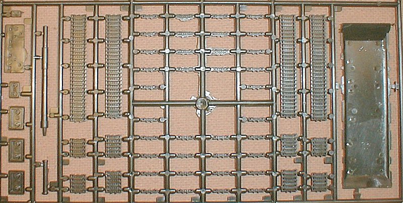 The road wheels are one piece and really need to have a grove cut down the middle because their large size wont be hidden by the tracks.