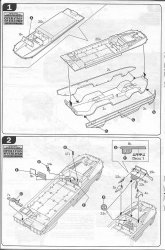 bulkheads in place. The boxart shows a number of inverted U-shaped tie down fittings around the edge of the hull which are not present in the kit. The hull sides