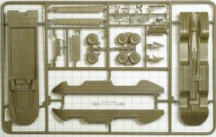 The parts are crisply moulded with no flash evident. The upper hull has several details moulded in place - the boat hook, spade and axe on the left front side, the