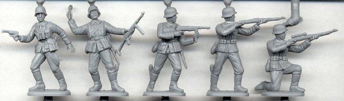 These are essentially the same figures as were originally released by ESCI, but with a couple of improvements. First, the molds have been cleaned up considerably, so the molding quality is much improved, with no flash, and very minor molding seams along the edges of the figures. Second, the plastic that Italeri is using is much more firm than the really soft, flexible, vinyl-like plastic ESCI used. The new stuff is not quite as hard as the styrene used for the AFV kits, but its increased rigidity makes it easier to cut and trim the figures. I have not yet tried gluing any parts, so I don't yet know if this stuff glues any easier.