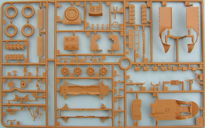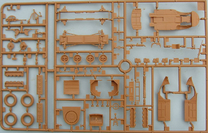 What better for an Italian company to release other than an Italian subject, albeit WWII, with the re-release of the old Esci Italian vehicle kits, Italeri are now expanding on that range with a few new vehicles of their own. Released after the two Esci tanks comes the AS 42 Sahariana, this small vehicle designed for the desert, based on the chassis of the AB 41 (which is also to be released) designed to be run both forwards and backwards this 4 wheel drive vehicle was built for reconnaisance work for the Italian army in North Africa. After the fall of the Italian army in North Africa the vehicle was redeployed to Italy where it still served with the Police force until the 1950's. The kit comes on one complete sprue,(shown here from both sides) the kit is quite simple in it's construction, but nether the less it is also nicely detailed. All the extra jerrycans for fuel and water for fitting down the side of the vehicle are supplied, but there are those that might wish to replace them as they are not the correct sort for the italian army. The 20mm Breda cannon is nicely represented as is the mount, also included is a MG. Two types of windscreen are included one with a protective cover and one open, the kit supplies the clear acetate for the windows with the instructions giving the correct dimensions for the acetate to be cut for both types of windscreen. Decals are included for 2 vehicles both from Tunisia in 1943, the Italian flag for over the rear engine used as an aid to recognition will need a lot of softener for it to settle down over the detail there, the more adventurous might want to paint it on. The decals are thin and in register. A small square of acetate is supplied for the windows, the dimensions of which are given in the instructions. This is a nice simple kit of a rare vehicle,Although the vehicle was used by the German Fallschirmjaeger both in Italy and on the Eastern front no markings are supplied for these, which is a shame. References on this vehicle are limited to general Italian vehicles books. |