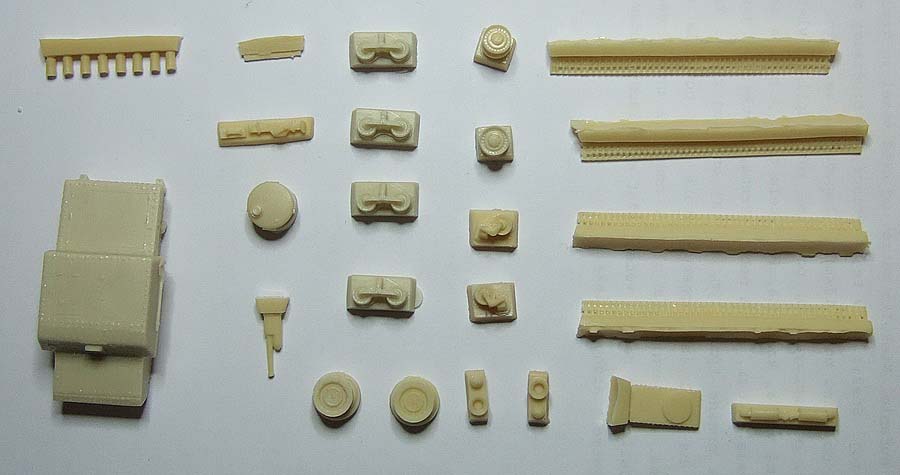 Inside the tiny box you will find 35 resin pieces and a small PE