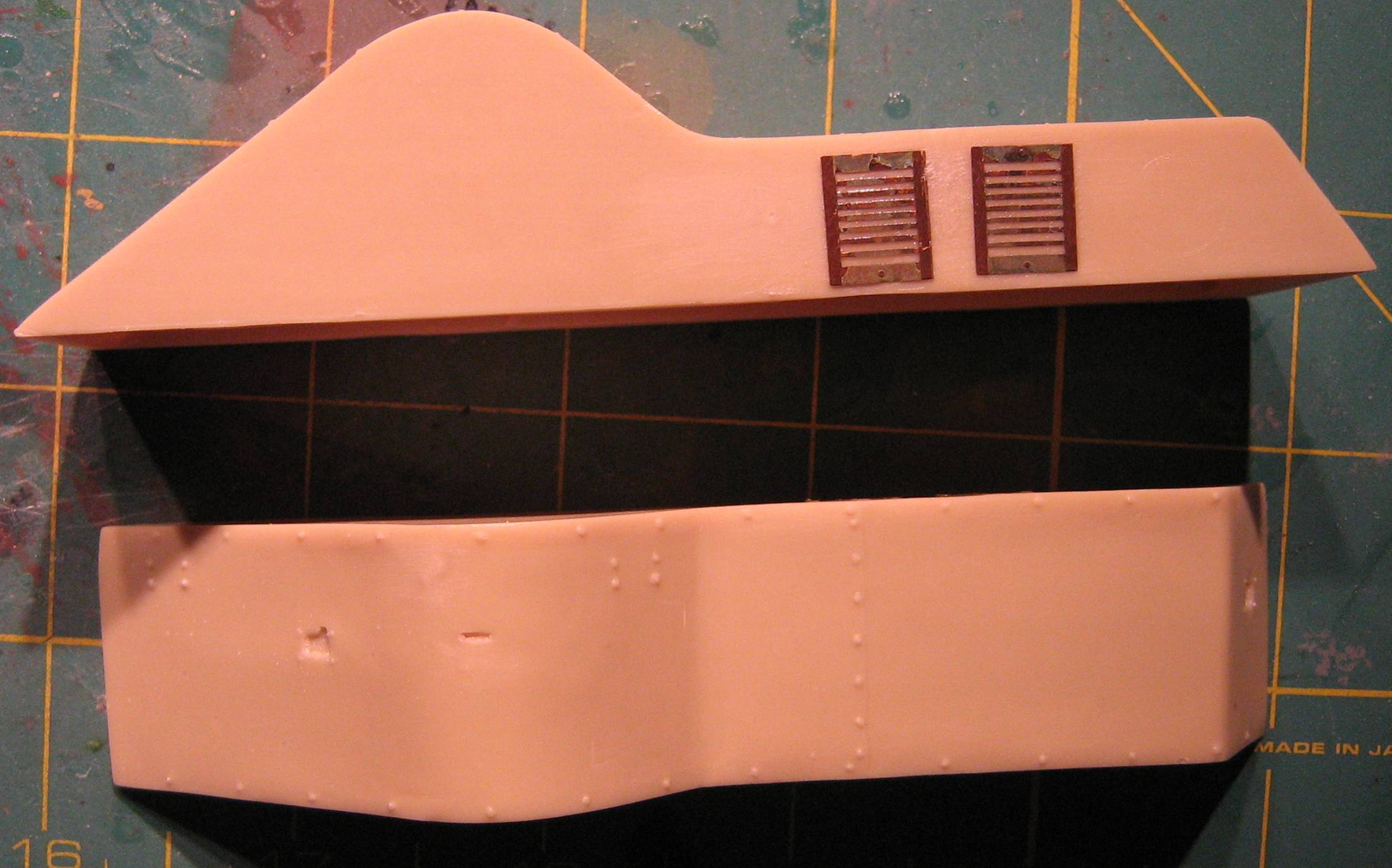 Right Photo: Scratch-built hatch with handle, hinge bolts