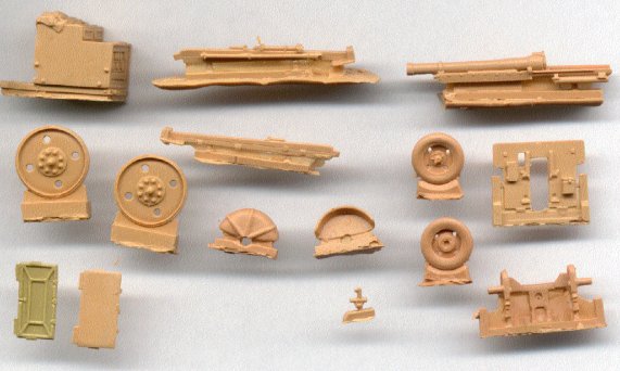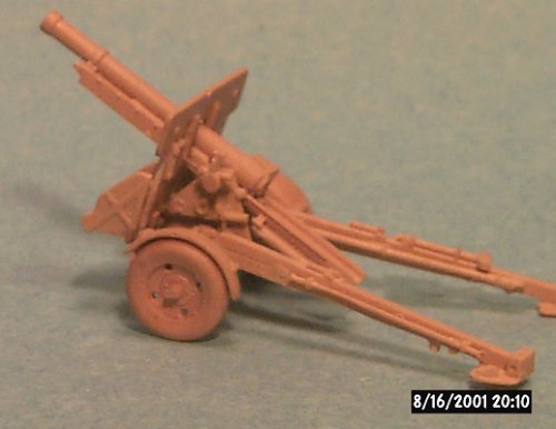 Overall the kit is very very nice with sharp resin casting, good accurate detail, and good fit of the parts. Suitable for war-gaming or a static display. This is a much better Japanese artillery kit than Fujimi's infantry gun. This is the only kit of this in braille scale I know of. It is the motorized version but I know of no towing tractors in this scale. Either of Hasegawa's Japanese trucks could be modified though. Substituting spoked wood wheels can convert it to the horse drawn version. The carriage is the same as the 75-mm Type 91 field gun so a little reworking of the barrel can make an easy conversion. For reference photos and historical info please check out: