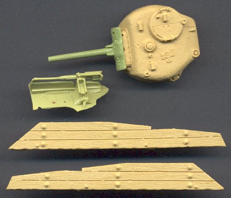 As for the quality of this set, it looks fantastic. The wooden side panels in particular are very well done. The turret has a really nice cast texture to it, which all plastic Sherman kits are lacking, and the machinegun is a darn sight better than the kit piece.
