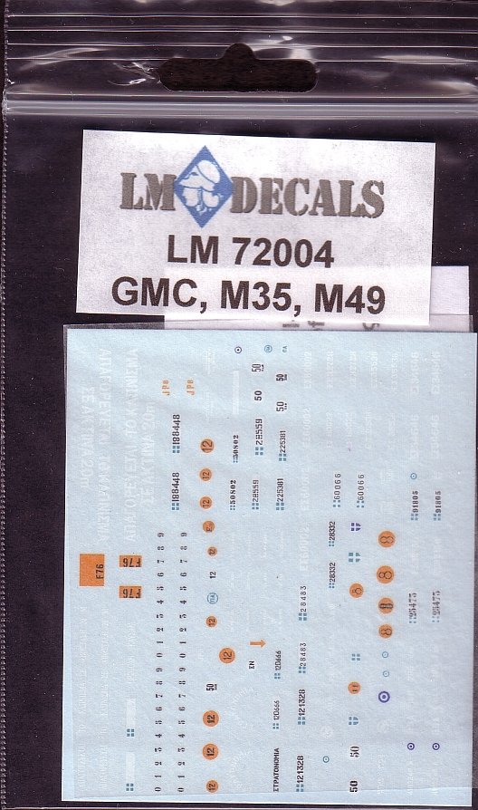 This set of markings are for the M35 2½ ton truck, M49 Fuel truck, GMC CCKW 353 2½ ton truck, CCW 353 2½ - 5 ton truck & GMC CCKW 353 750 gal. fuel tanker.