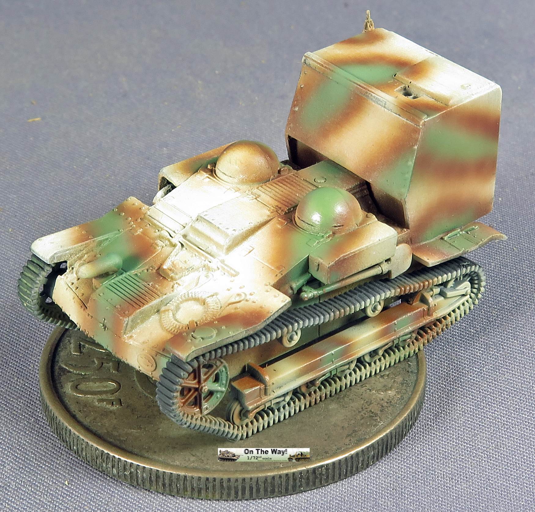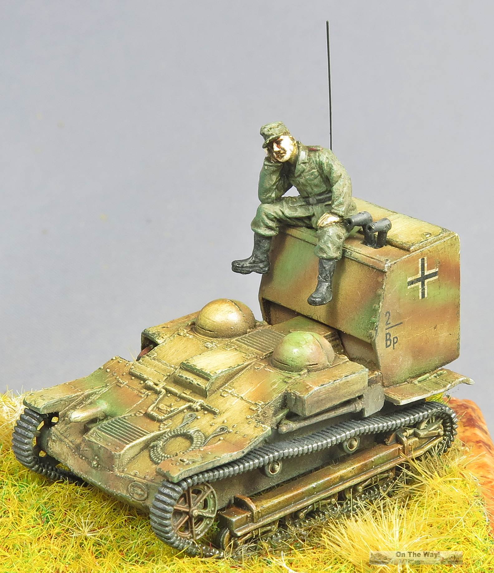 The resulting vehicle is very tail heavy, due to the relative weight of the resin box, so the assembled vehicle is best put on a base. Decals for a vehicle of the Sturmgeschütz-Abteilung 200 of 21.Pz.Div were custom made by Aleran. A figure from Caesar was added.
