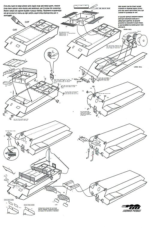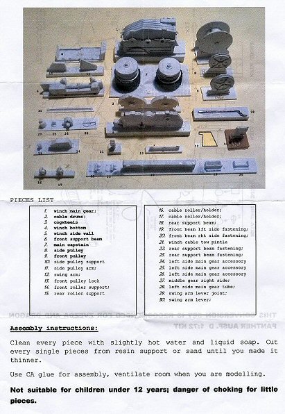 The two instruction sheets (one for the winch and one for the hull), backed up by two parts lists, are sufficient to execute the conversion. They do not only contain some nice images, they even give the exact place where to glue the small fittings on the hull, something often forgotten in resin kits. Most