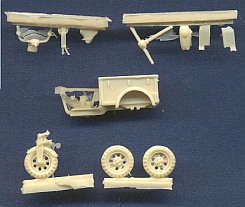 This motor tricycle was adapted from civilian use to serve as a light cargo vehicle and personnel carrier for both the Imperial Japanese Army and Navy. It had a V-2 gasoline engine, air-cooled, that drove both rear wheels through a differential. The model is composed of 11 resin pieces that come in a small resealable plastic bag. There are neither instructions nor decals included, just a small blue paper with the product information and a side drawing of the vehicle. This is a really cute little kit, well detailed all around, with only some light flash and a couple of plugs at the lower rear end of the cargo bed to be cleaned. From the few pictures I could find of this motorcycle, I think that the wheels on this model look a bit heavy and will need some work, but that’s a minor issue on what seems to be a fairly accurate representation. References: Lonesentry.com |