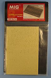 Base is a single slab of light yellowish coloured resin. Dimensions are 112mm (4.4in) long by 74mm (2.9in) wide. The resin showed no pinholes or major blemishes though a few wouldn't detract from the overall look since I would suspect that a real cobblestone road would have a few due to freeze/thaw during the spring and autumn seasons. A few of the stones stand proud above the surface adding a tad more realism to the road surface. As you can see below I chose to paint my base in grey tones. I'm sure that it would look equally as good painted in brown tones. To me it looks to be a very realistic representation of a section of cobblestone road surface, but I do have to admit that the closest I've come to a real cobblestone road would be one made of a brick. |