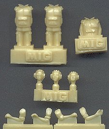 Now we're talking! The only figures in shorter supply than World War II tank crews are modern tank crews, and MIG has come to the rescue for the Bundeswehr. Three partial figures for use in modern German tanks and AFV's, with interchangeable heads and arms. The two taller figures are the same, but the different heads and arms will distinguish between them.