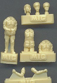 One figure has a tanker's helmet, and the other two are wearing felt hats. The facial expressions are fantastic, and easily distinguishable between the three. All parts are well cast and bubble-free. Excellent figures. Considering the recent release of a couple of Merkavas, hopefully we'll see some Israeli tankers soon too (and how about some French for the Revell Leclerc and Heller VAB? And while I'm on the subject of wish lists, I'd also like to see some Russian crew in temperate and tropical uniforms too. Am I being too demanding? :)