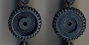from MK72.) Casting is near perfect, with only one pin hole found on the inside of one wheel and crisp detail. The way the wheels are attached to the casting blocks avoids the loss of any detail as the small "flange" only covers the centre of the tyre, where there is no profile on the kit parts. This is both a blessing and a curse, as there actually should be some thread pattern on the center of the tyres. While MK72 does not mention it, these wheels would also fit nicely on a Schwimmwagen, if you don't want to go for cross-country tyres.