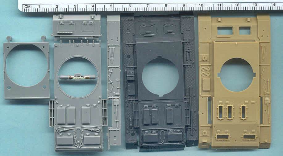 hulls. At left is the Dragon Pz III hull with engine vents and tow