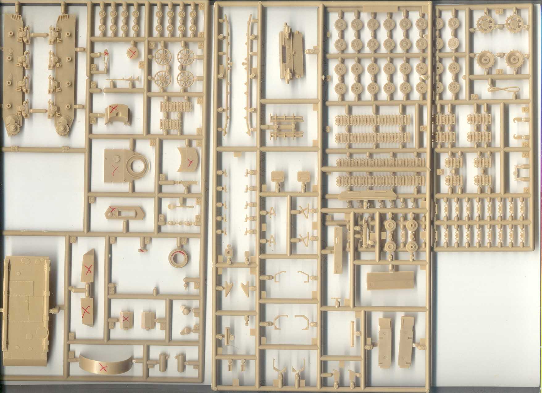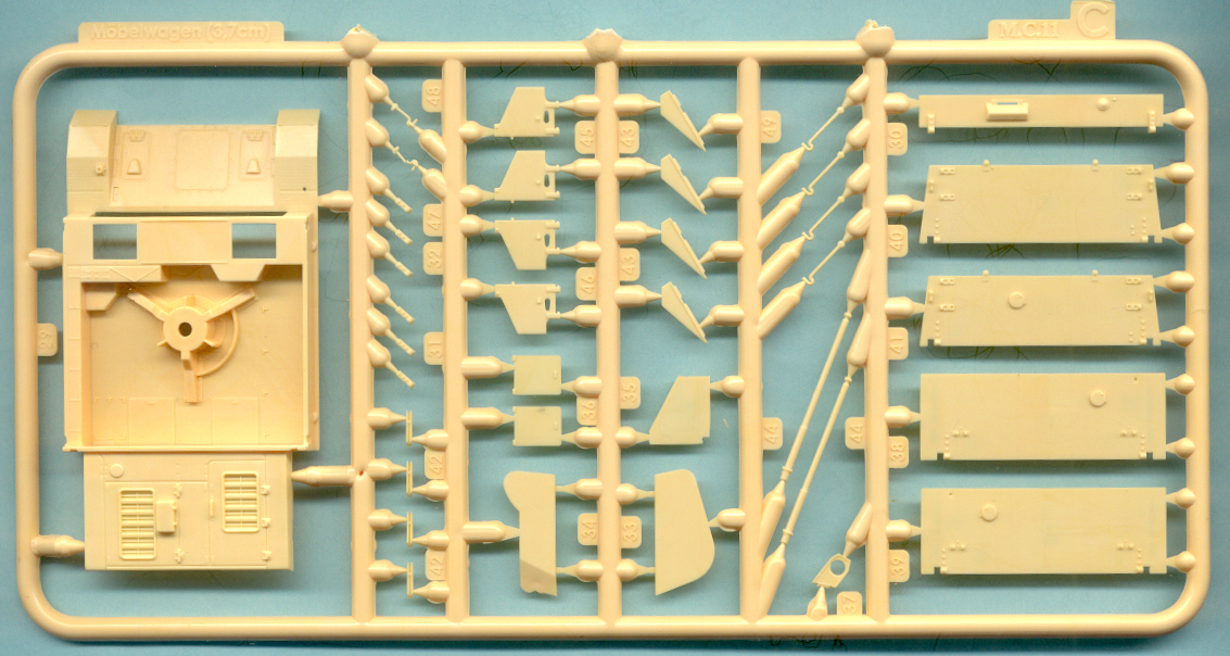 and 37 parts for the Moebelwagen upper hull. Revell supplies about 96 parts for the suspension and lower hull, and 46 parts for the link & length