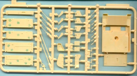 This is the backside of Sprue C (photo above) to point out the many ejector pin marks on the back (inside) of the compartment sides (parts 16, 17, 18 and 19). For a good display model these round marks should be filled in and sanded smooth.