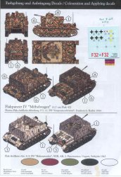 The water slide decal sheet contains markings for two Moebelwagens as well as markings for MACO's Ostwind and MACO's Kugelblitz model kits.