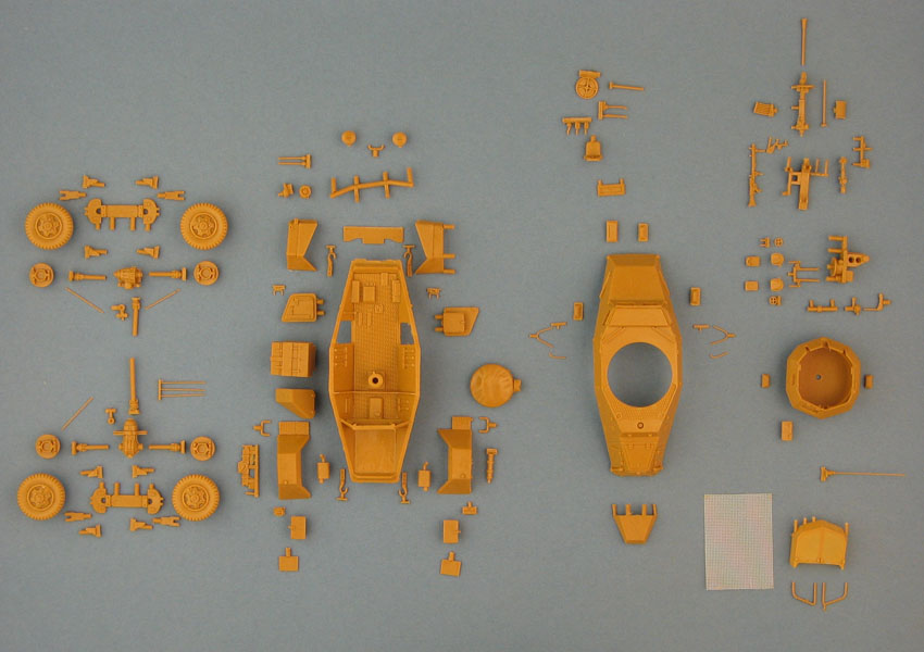 or painting options. Tulle provided for turret mesh. 3. Quality of casting The casting quality is very good, with no air bubbles, warpage or other annoying discrepancies. Only one small, fragile part was broken on the sprues. The detail is quite crisp (better than the ICM kit). Most parts come with quite big molding 'carrots', which are sometimes hard to carve away, especially on the insides of the wheels, which require a major effort.