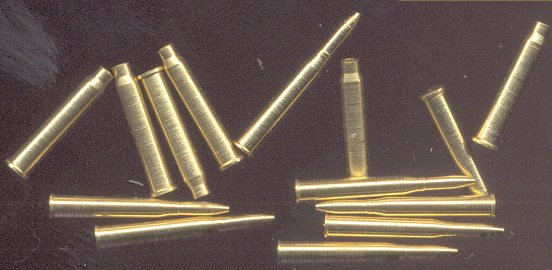 Beautiful turned brass pieces. Comes with seven complete shells, and seven empty casings. The shell casings in this set were measured (with a tolerance of about 0.2mm) and scale out to 684mm, while the real rounds were 714mm. |