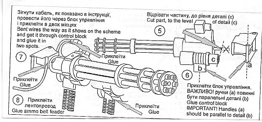grips; two lengths of flexible ammo belt feeder; a short length of thick wire to use for making the handles of the spade grip; and a length of thinner wire for the power cable. A length