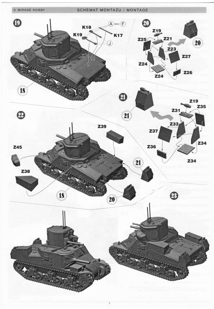 refer for more information and/or comments, to these pages : Kit 72802 Medium Tank LEE MK-I – by Stephen Brezinski : http://www.onthewaymodels.com/articles/Stephen_B_Soviet_Lee/SBrez_Soviet_Lee_article.htm Kit 72804 GRANT Mk I , EL ALAMEIN : http://www.onthewaymodels.com/reviews/Mirage/GrantMk1prev.htm Kit 72805 COMMAND TANK GRANT Mk I (Including a comparison between the Hasegawa and Mirage M3) : http://www.onthewaymodels.com/articles/SBrezinski_Modeling_the_M3_Grant.htm Kit 72806 M3 "Kursk 1943" (Including a comparison between the Hasegawa and Mirage M3) : http://www.onthewaymodels.com/articles/Stephen_B_Soviet_Lee/SBrez_Soviet_Lee_article.htm Kit 729001 M3 "General Grant CDL" by Volker Helms (in German) : http://www.ipmsdeutschland.de/FirstLook/Mirage/Mirage_M3_General_Grant/Mirage_M3_General_Grant.html Kit