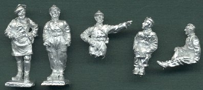 ![]() This is the first release in what I hope is going to be a long line of metal figure sets from Mirage. This company releases some of the best plastic vehicle kits on the market today, and these new figures are continuing that trend of fine products. The set includes five figures: two standing upright, two seated, and one 2/3 figure for placement in an open hatch. The standing figures measure about 24mm tall without their headgear, which makes them approximately 5' 8" (1.73 m) tall in 1/72nd scale.