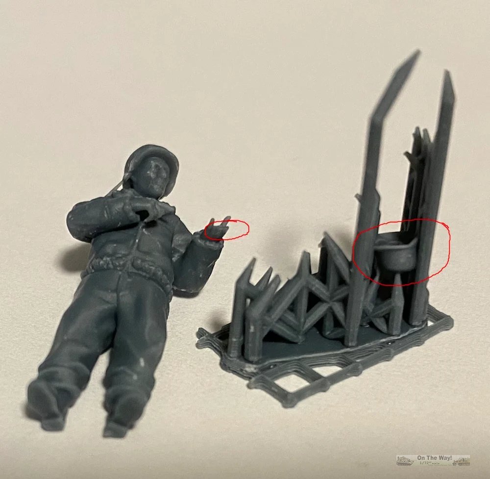 Figure 3 is supposed to be holding a German helmet (with tiny decals provided), however the helmet is literally embedded in