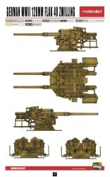 Some history One of the best German anti-aircraft guns in WWII was without any doubt the Flak 40. This heavy 128 mm gun could fire a shell of 26 kg as high as 35.000 feet, where it would burst apart in a deadly cloud of shrapnel. Some sources even state an altitude of 48.500 feet. This was high enough to take even the highest flying allied bombers out of the sky. Design of the gun already begun in 1936, three years before the official outbreak of the war. Not that there were any direct needs for such a powerful gun, but rumours spread In German headquarters that the allied powers were developing a high altitude bomber. The first prototype was ready in 1937. Besides its extreme power, the tests also revealed the main drawback of the gun. With its weight of 13 tons, it was too heavy to be used as a mobile gun and thus useless for frontline service. Attempts were made by the company Meiler to design a special trailer for towing the gun, but as trailer and gun weighed over 26 tons, this was not a success either. Not more than six of these trailers would have been made. A last try to give the gun a certain mobility, was to mount it on flat railway cars. This solution wasnot successful either. Finally, the German army chose to use the guns only from (fortified) static positions, where they could defend industrial complexes or towns. When the war started in 1939, no gun had been produced. As long as Germany was on the winning hand, this heavy anti-aircraft gun was no priority. It was felt that the better known 88 mm anti-aircraft gun Flak 36 was suitable enough for the job. This changed after the first bombardments on Germany, when an urgent need grew to protect the Reich. Besides shooting higher, a more powerful anti-aircraft gun can start shooting earlier at mid-altitude flying bombers and hold them under fire for a longer period of time. As such, the efficiency of such a gun is greater. For the Germans however, this was still not powerful enough. To augment the gun’s efficiency even more, a special version was built with two guns on one mount. The double Flak or Zwillingsflak 40 was born. Nearly all these guns were placed on top of specially designed anti-aircraft towers, as they could be found in Hamburg, Berlin and Vienna. Pictures prove that at least one Zwillingsflak was also used in the defence of the French port of Brest. Production of the Flak 40 started in 1942. By the end of the war 1.125 of these heavy anti-aircraft guns had been produced, of which 34 were Zwillingsflak.