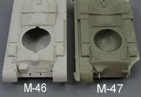 Since the M47 is a development of the M46, I also compared the Model-Miniature hull to the Trumpeter M46 parts and guess what? When looking at all the details, it became obvious that this, once again, is a copy of an assembled Trumpeter hull, slightly adapted by deleting the rotoclone blower between the hatches to resemble something that looks like the glacis of the M47. However, the glacis on a real M47 (see below) lacks the prominent ridge of the M46 and therefore has a much sharper slope, a feature that Model-Miniature has failed to capture. Additionally, the details on the resin hull are notably softer than these on the original plastic one.