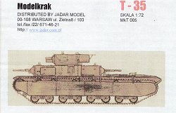 During the early 1930s the idea of the heavy, multi-turreted "breakthrough" tank was considered, and spawned the British Independent tank, and the Soviet T-35. The T-35 was the only one of the two to actually reach production and service. Development began in 1930 and production continued from 1933 through to 1939, with final total production of about 61 tanks over the seven years. For those modelers familiar with ICMs 1/35 scale T-35 kit (a February-April 1939 version?) you will note that there are some distinct differences between the two T-35s depicted in these two kits. One of the most prominent differences is two hatches atop ICMs main turret, and one large hatch on Modelkraks kit, which is an earlier, 1936 version. Later, 1938-1939 versions of the T-35 had slightly sloped, conical-shaped turret sides.