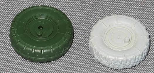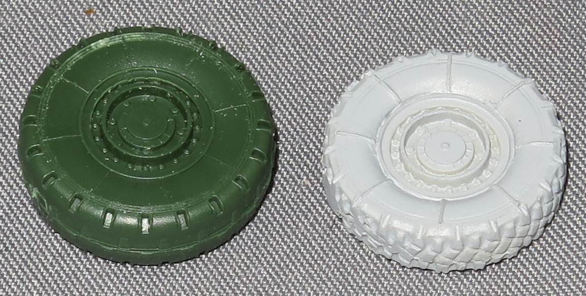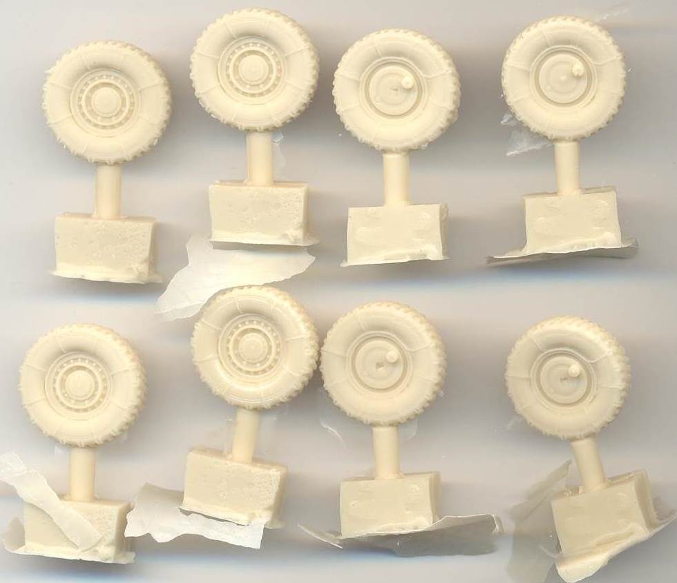 This wheel set is a vast improvement over the wheels provided in the Academy kit, even after the minor cleanup that the parts require. The holes for the axle stubs also need to be driled out a bit deeper, but that's about all it takes. |