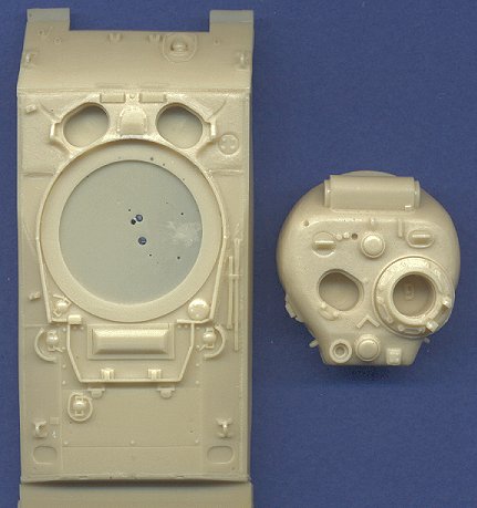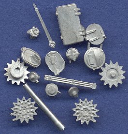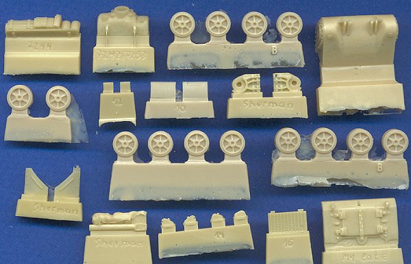 Most of the parts are provided in resin, although a few are also made from cast metal. Although I have had many problems in the past with poor resin casting (bubbles and air pockets), this set is very well done, with only a couple of easily-fixed pinholes. The wheels are the stamped, six-spoke variety, and includes two spares. Some stowage supplies are even included. The hatches, sprocket wheels, and some other smaller details are cast in white metal, and are very well done. The hatches are detailed on both surfaces, which allows the modeler to display them in the open position. The gun barrel is turned aluminum, and is perfect. Compare this kit with the only other M4 105(W) conversion on the market from Commander Series. Although the turret on that other kit is pretty decent, the hull really cannot compare to this one from MR Models. This is a gorgeous kit, and I highly recommend all the MR Models kits. Thank you very much to Smallscale.de for the providing the review item. |