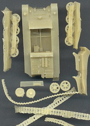 The parts are very well made, with very good detail, and only a small amount of flash on the smaller parts. The fighting compartment walls are molded so thin, they are actually translucent. They are warped a bit because of this, but should be easy enough to fix with some hot water. The inside of the hull is fully detailed, with a seat for the driver, and most of the external details are molded onto the hull, such as the tow hooks and headlights.