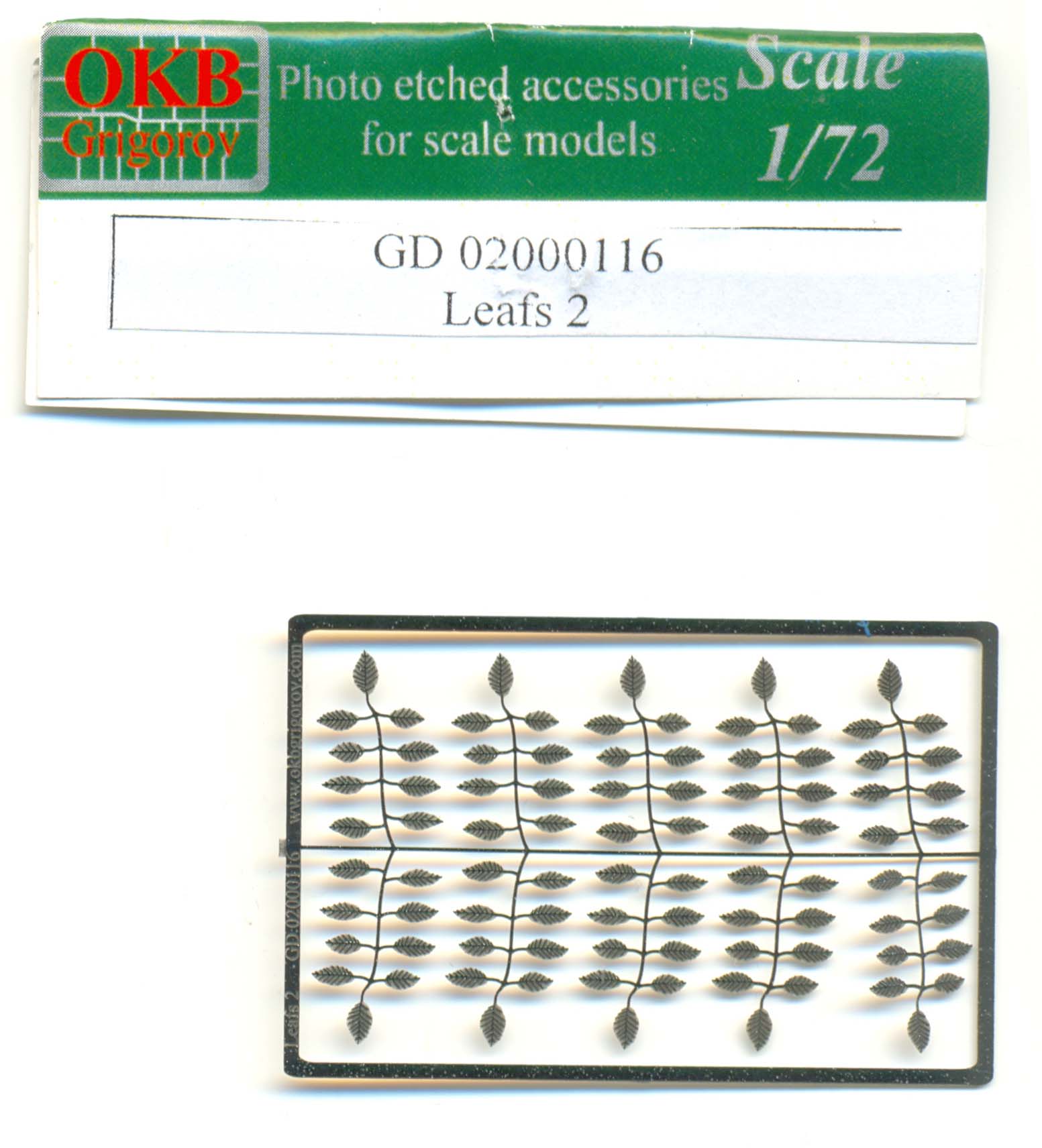 90 white metal leaves with delicate veins. Measuring at around 2mm, they would just do for larger leaves in 1/72, although I guess - for a complete tree - you would need a lot of them !!! |