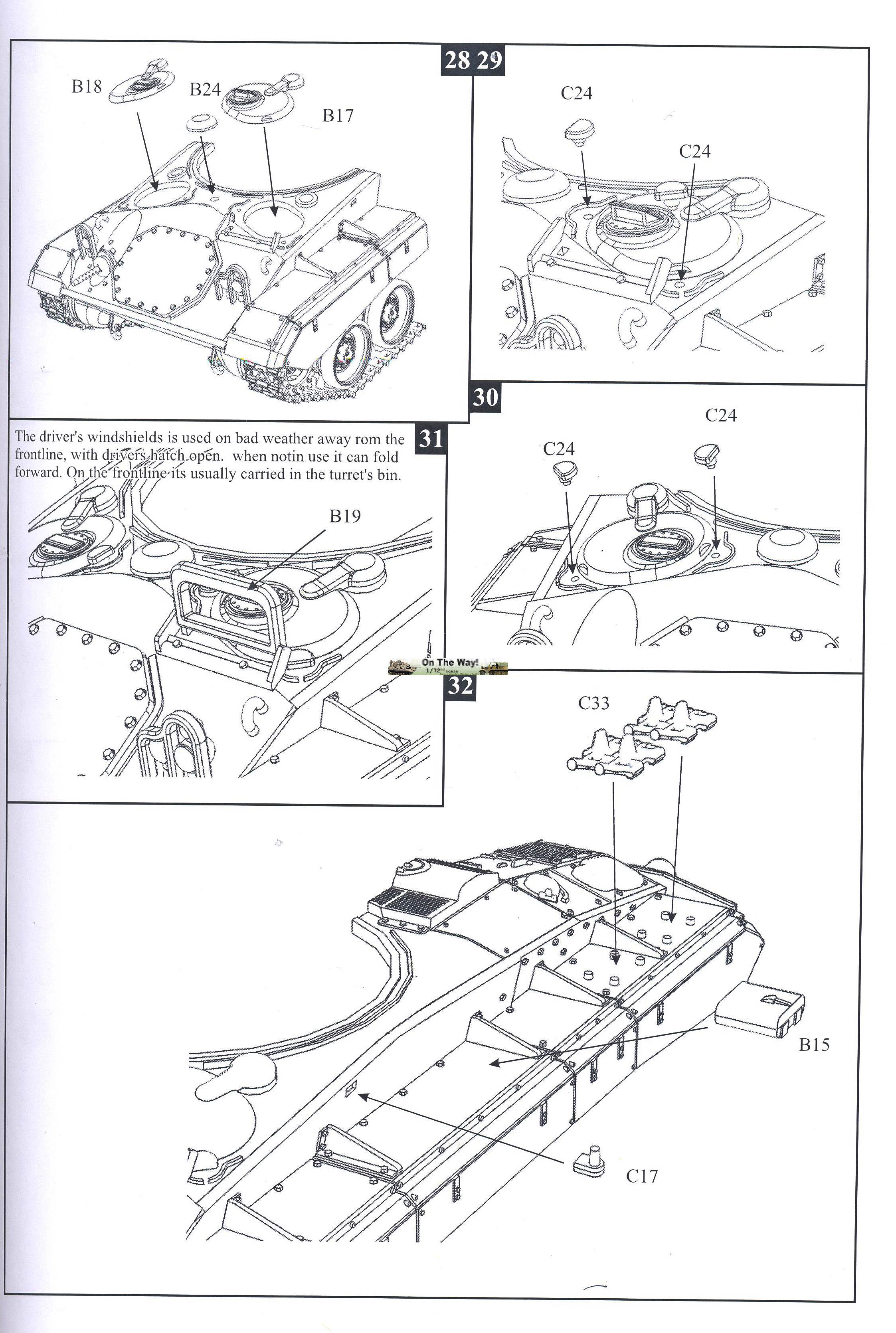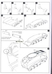 the bolts. The three bolts above each fender flap were made with Archer rivets. I feel that the bolts on the glacis maintenance hatch are nicely done, but stand too proud as the real bolts were (partially) countersunk. Small handles were added, as they are rather prominent on the real tank. The small footholds for the lower glacis were not used, as APACHE was not equipped with them. While building the kit, one of the lifting rings was ritually offered to the carpet monster. I made both lifting hooks on the glacis from lead wire. Another part that went AWOL was one of the latches for the driver's and radio operator's hatches. Having lost one out of four, I had to leave them all off. (Both hatches can be positioned open, by the way, but then some interior needs to be created, or figures used to plug the hatches.) I tried hard to use the photoetch headlight guards (parts 9, 10 and 12) and failed utterly to get them to look right. (I take all the blame for that.) I finally settled for thinned down plastic guards (they really are too thick for their own good) and only used the PE supports (parts 11).