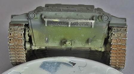 Another thing that I changed in a late stage, was the basket at the rear of the hull. I forgot to check the PE parts when gluing the (rudimentary) plastic basket, but, in the end, felt that the PE version was far superior, though difficult to assemble; it ended up slightly bent, which I believe would have happened to the real thing as well after a few days in the field. Note that some vehicles had a different type of basket (actually, more a type of shelf) in this position.